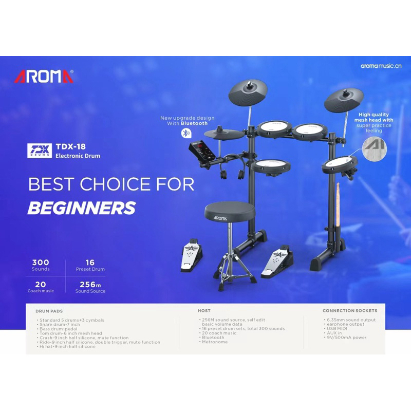 NEW PAKET PREMIUM MESH KIT Bonus Headphone dan Bangku Drum Elektrik Aroma TDX18 TDX 18 Drum electric Aroma TDX18 Origina
