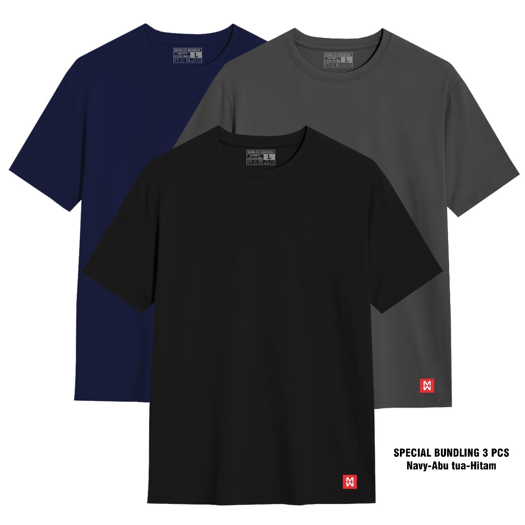 Bundling 3 Pcs Kaos Polos Navy-Abu tua-Hitam Lengan Pendek Cotton 30s