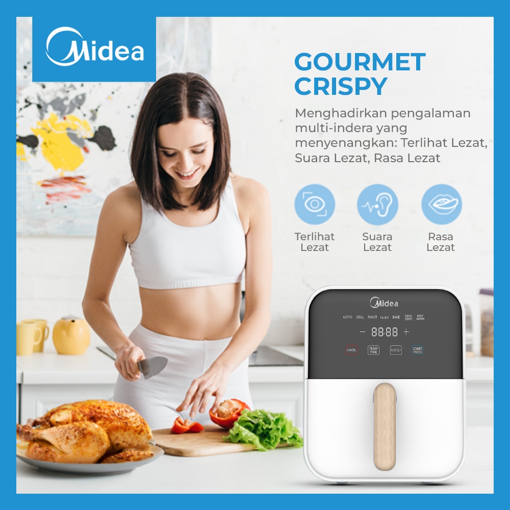 Midea Air Fryer 4L 650W Low Watt MAD40007ADA Penggorengan Tanpa Minyak Digital Touch White