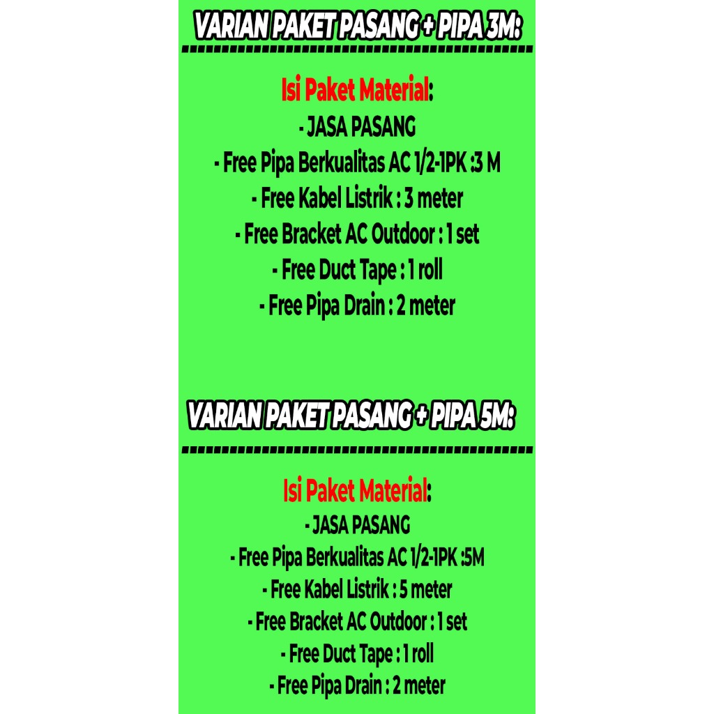 UNIT SAJA, UNIT + PERALATAN 3M, PASANG + PIPA 3M, PASANG + PIPA 5M