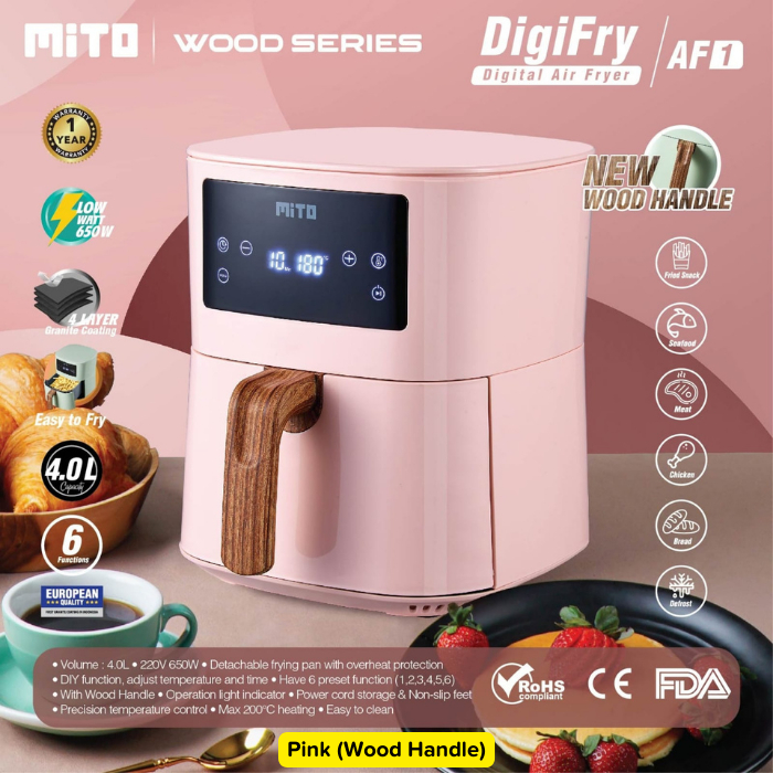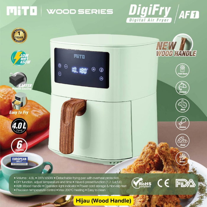 Mito Digital Air Fryer AF1 4 Liter Low Watt Wood Handle Kayu | Mitochiba AF 1 Touch Screen Frayer