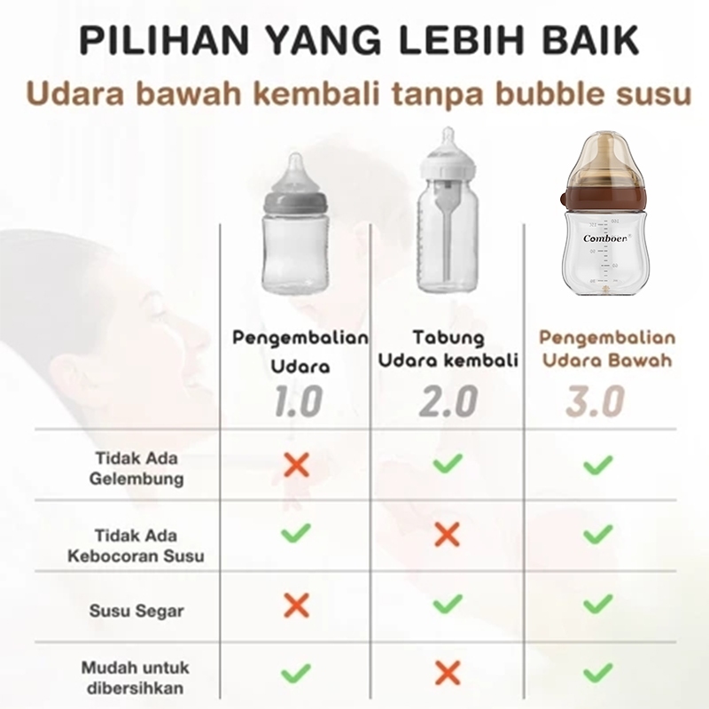 Comboer Botol susu newborn anti kolik kaca Silikon boron tinggi 160ML/240ML Botol Minum Bayi BPA Free Botol Bayi Newborn