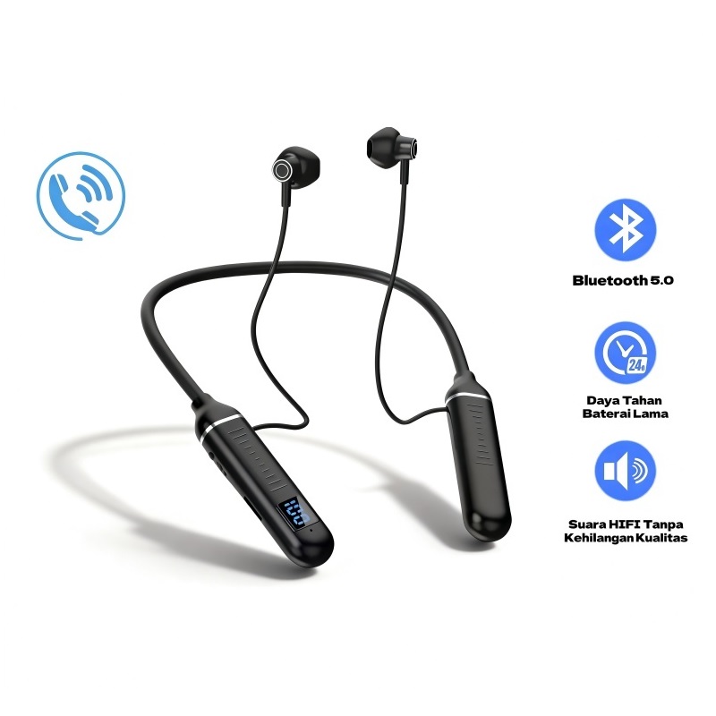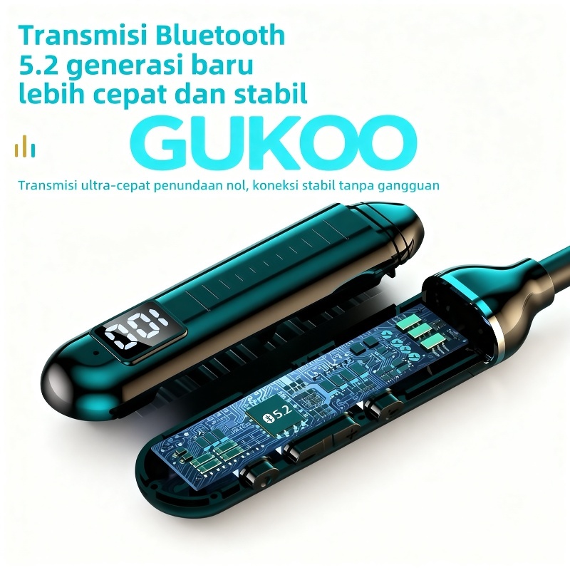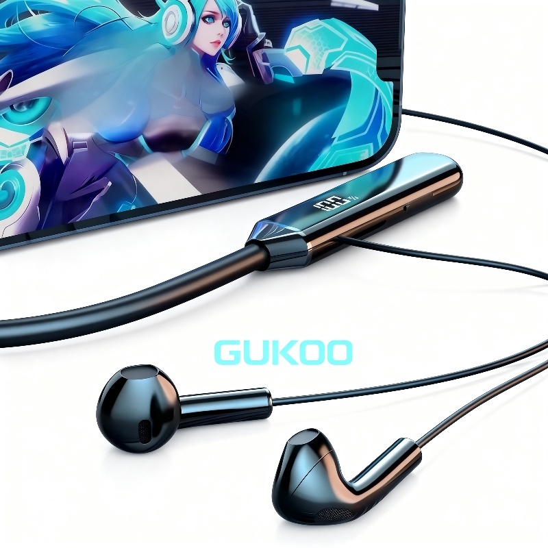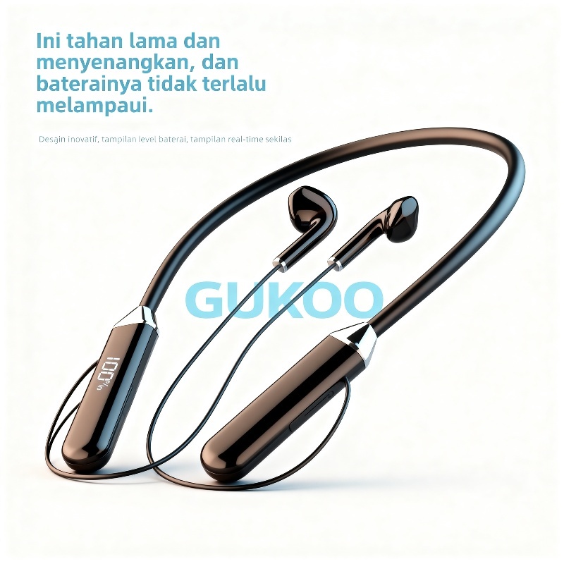 Headset Headphone GUKOO Leher Bluetooth, Kualitas Suara Jernih, Baterai Tahan Lama 24 Jam