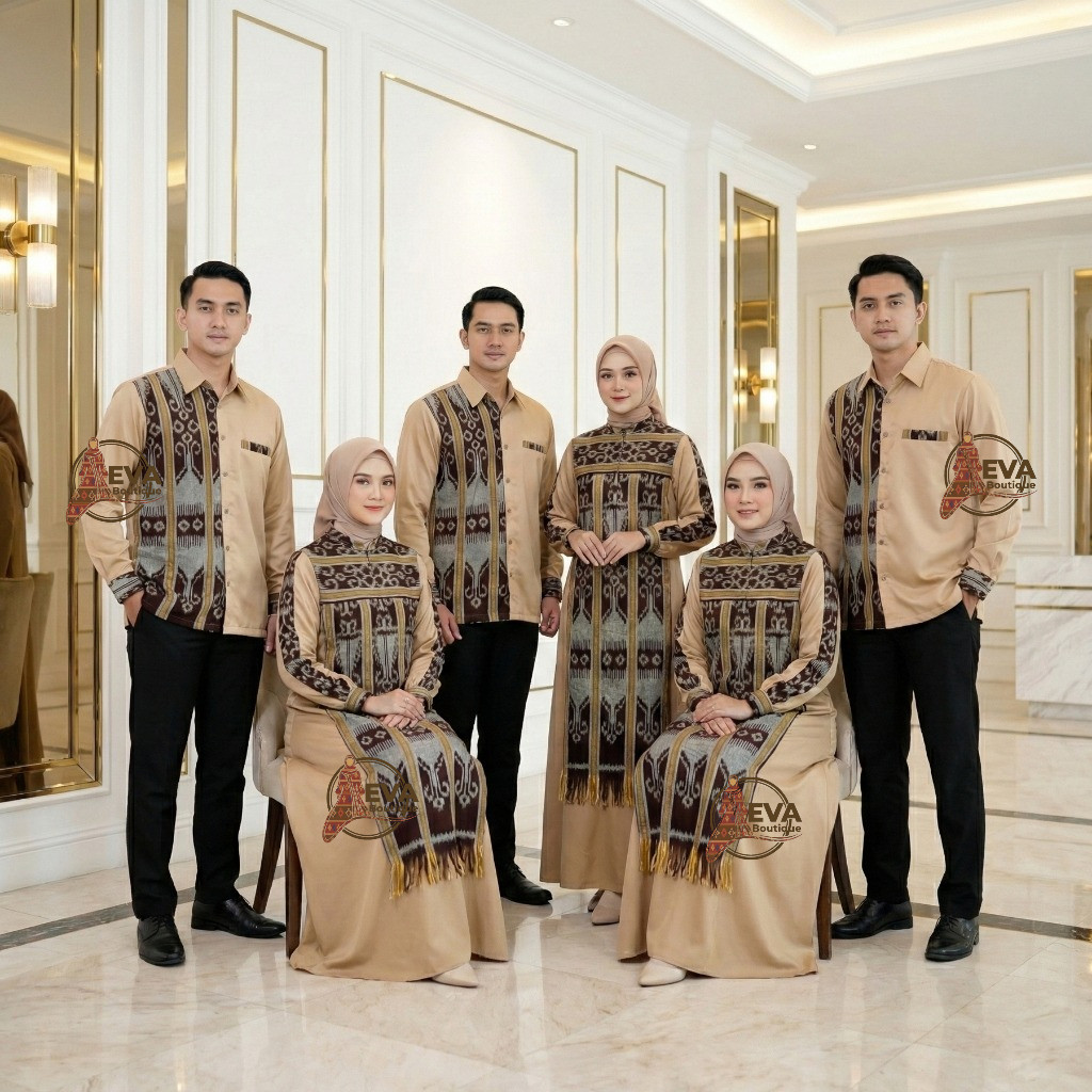 Baju Tenun Set Sarimbit Keluarga Kondangan Stylish Nyaman Digunakan Syaluna Evaboutique