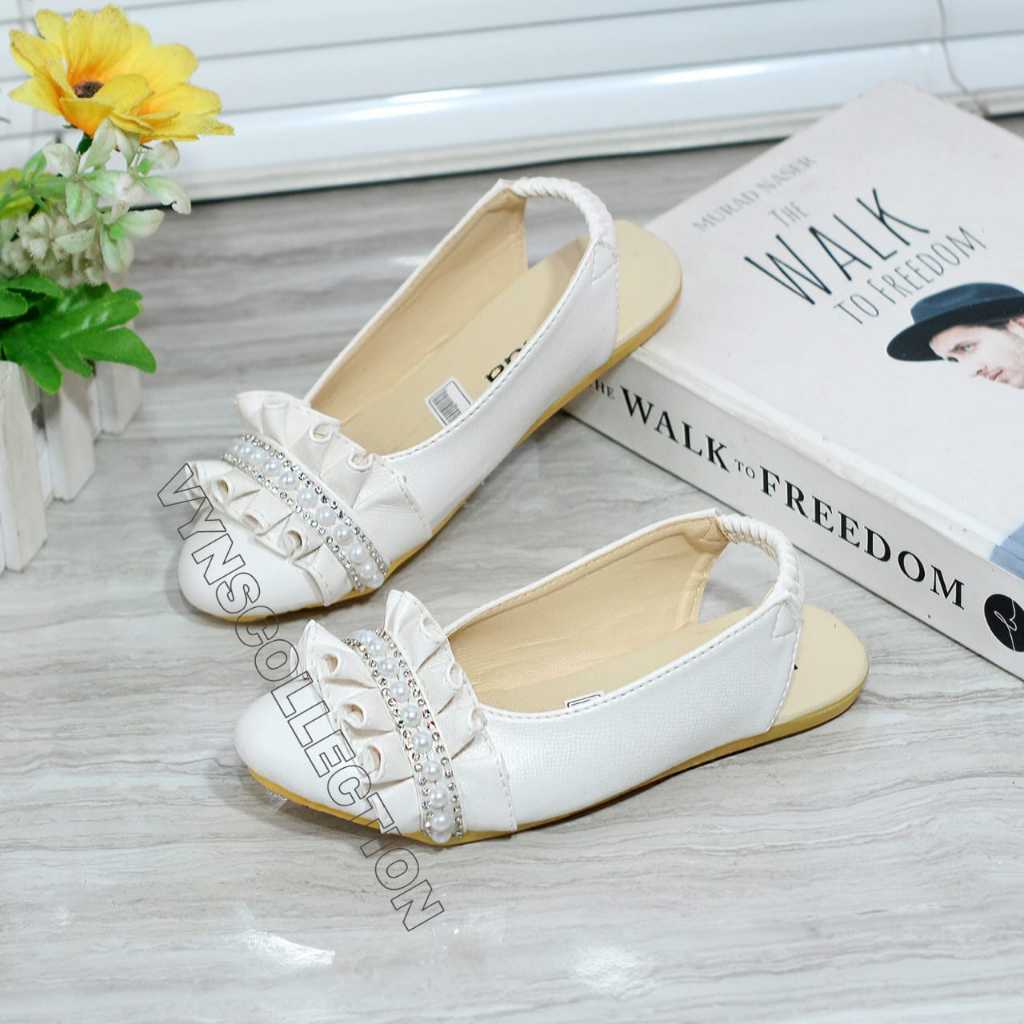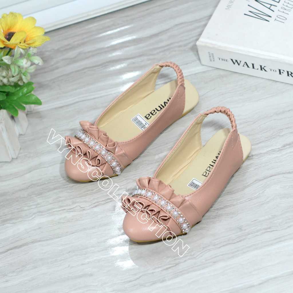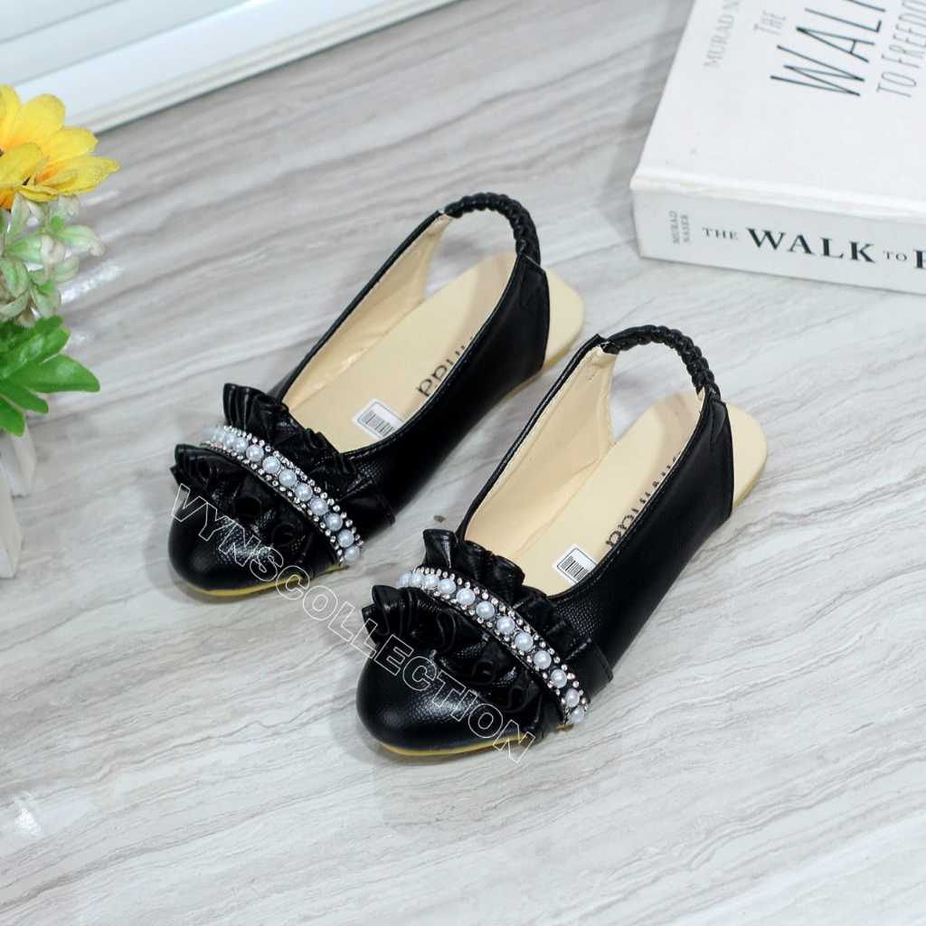 Sepatu Slip On Anak Perempuan Selop Flat Shoes Bustong Pesta Anak Mutiara Sol Karet Anti Slip Umur 1-10 Tahun Vynscollection
