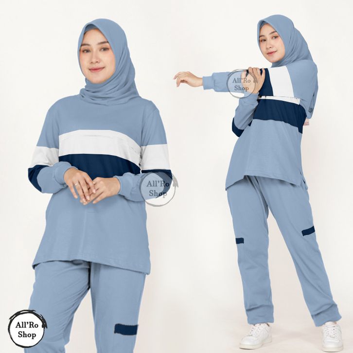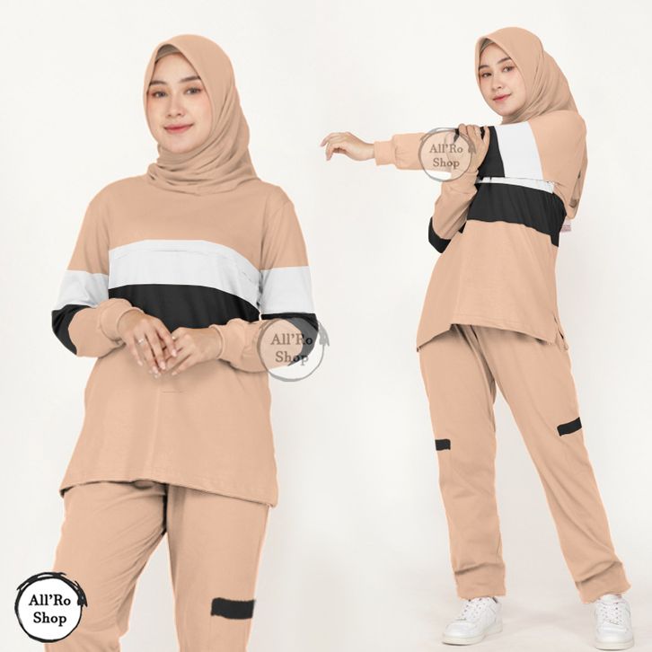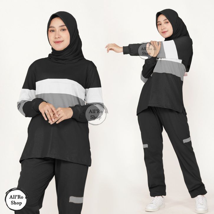 [STAR] Baju Olahraga Wanita Muslim Oneset Mona Baju dan Celana Panjang Setelan Baju Senam Jogging Badminton Simple