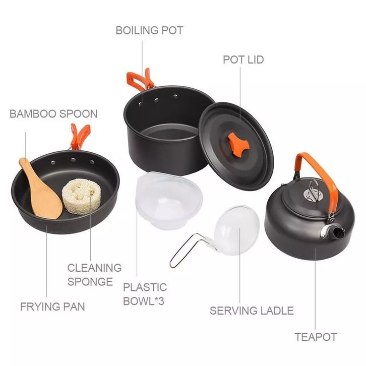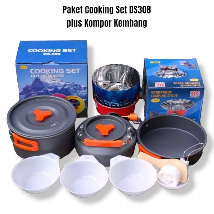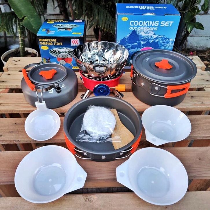 Alat Masak Camping Paket Cooking Set DS 308 Nesting DS308 plus Kompor Camping Kembang Alat Masak Camping Portable