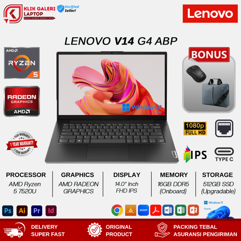 Laptop Gaming Lenovo V14 G4 AMD Ryzen 5 7520U 16GB DDR5 1TB SSD 14.0 Full HD IPS Windows11 Original