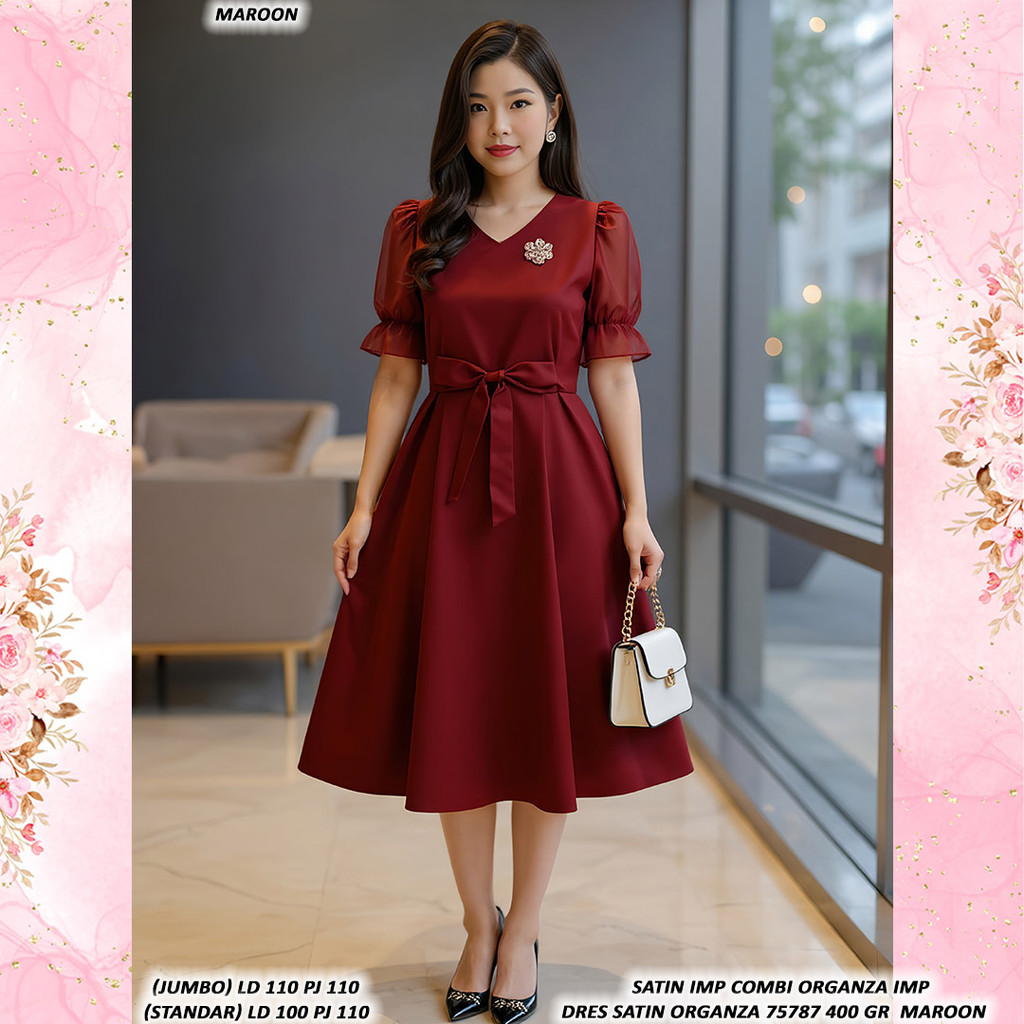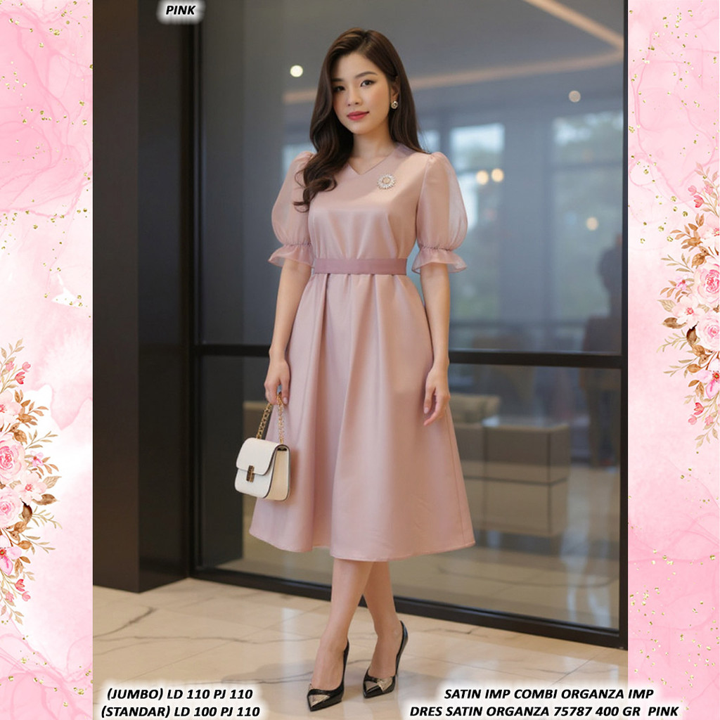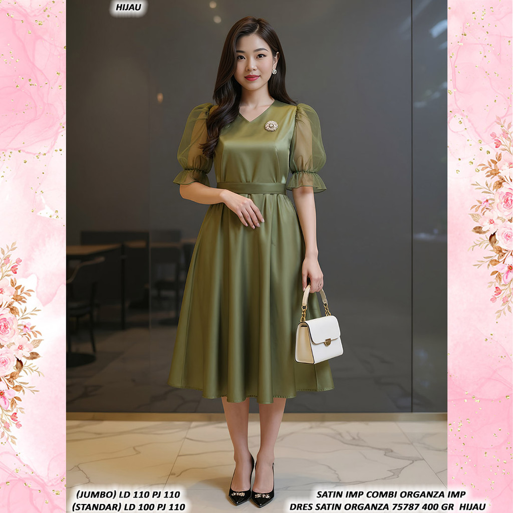 DRES SATIN ORGANZA 75787 400 GR #KUALITAS TANPA TANDING dress pesta seragam natal dress mewah kondangan acara nikahan