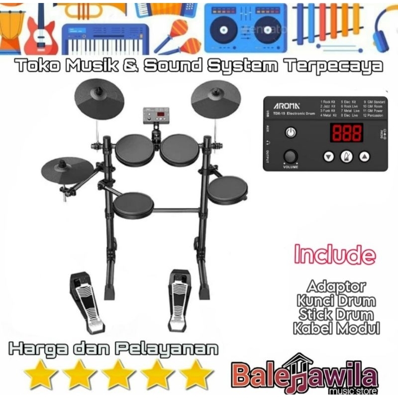 NEW 2026 Drum Elektrik Electric Drum Aroma TDX N1 TDX15 TDX 15 TDX-15 atau Aroma TDX18 TDX 18 Combo Paket Lengkap