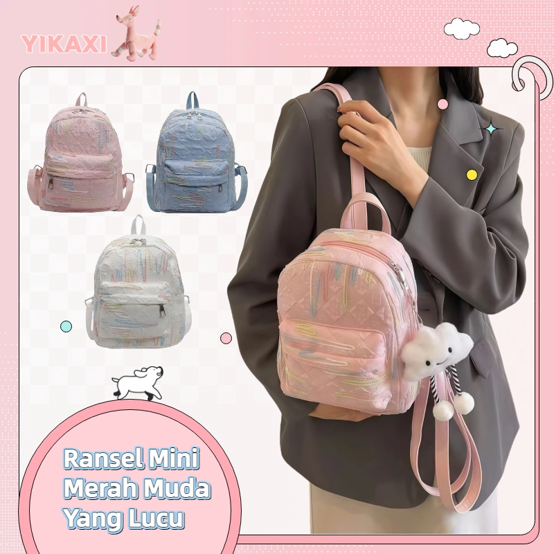 Tas Ransel Mini Wanita Korean Style Aesthetic Lucu Pink Import