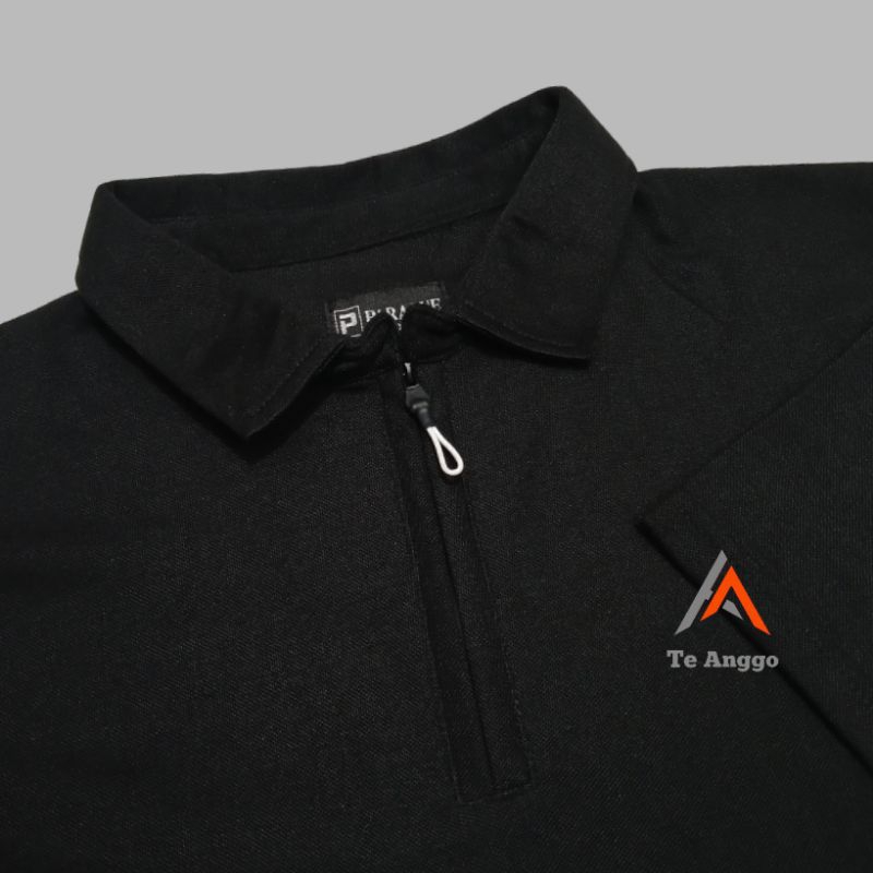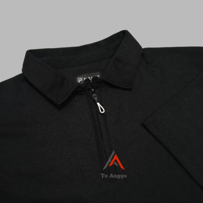 Kaos Polo Zipper Pria Lengan Pendek Polos Hitam Katun