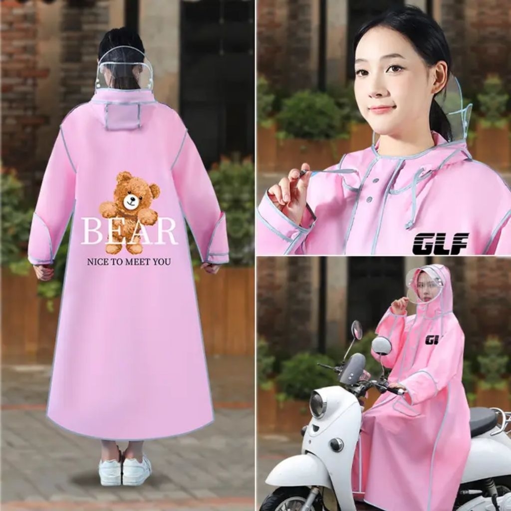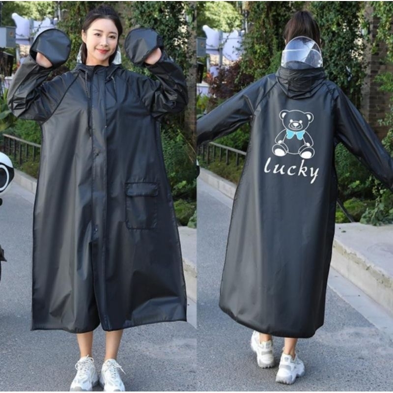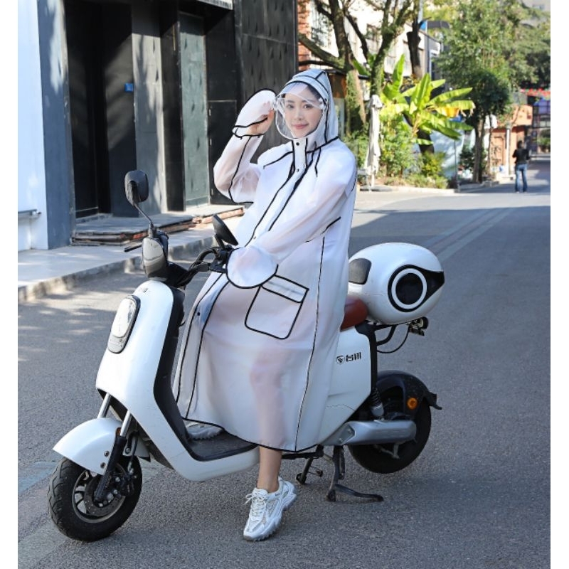 Jas Hujan Terusan Dewasa Zipper Korea Style Raincoat Mantel Hujan Zipper Faceshield Pria Wanita Cakep