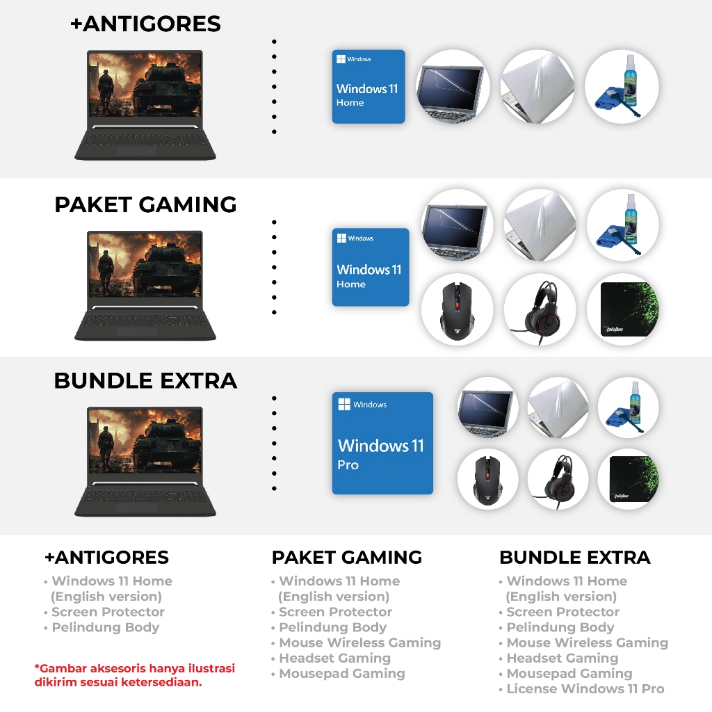 TANPA ANTIGORES, +ANTIGORES, PAKET GAMING, BUNDLE EXTRA