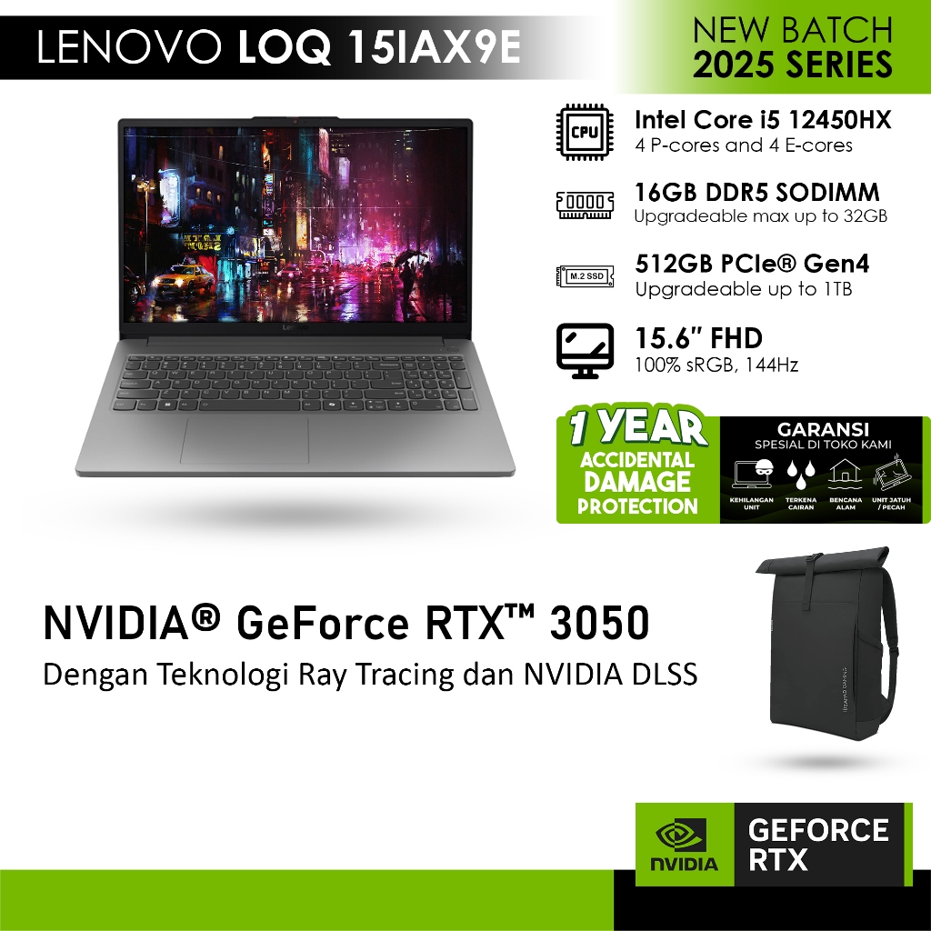 LENOVO LOQ ESSENTIAL 15IAX9E GeForce RTX™ 3050 6GB - i5 12450HX 16GB 512GB WINDOWS 11 +MICROSOFT® 365 BASIC 15.6FHD 144HZ -EHID