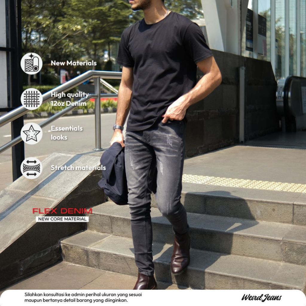 Celana Jeans Panjang Pria Polos Slimfit Polos Abu-Abu Gelap
