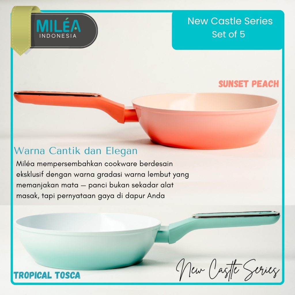 MILEA Set of 5 – Ceramic Coating Anti Lengket, Anti Noda | Gradiasi Stylish | Bebas PFOA PTFE, Kompor & Induksi