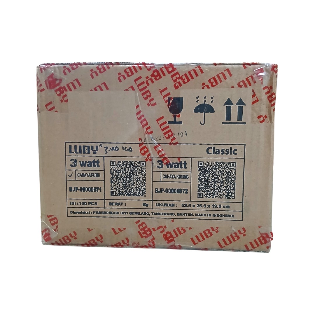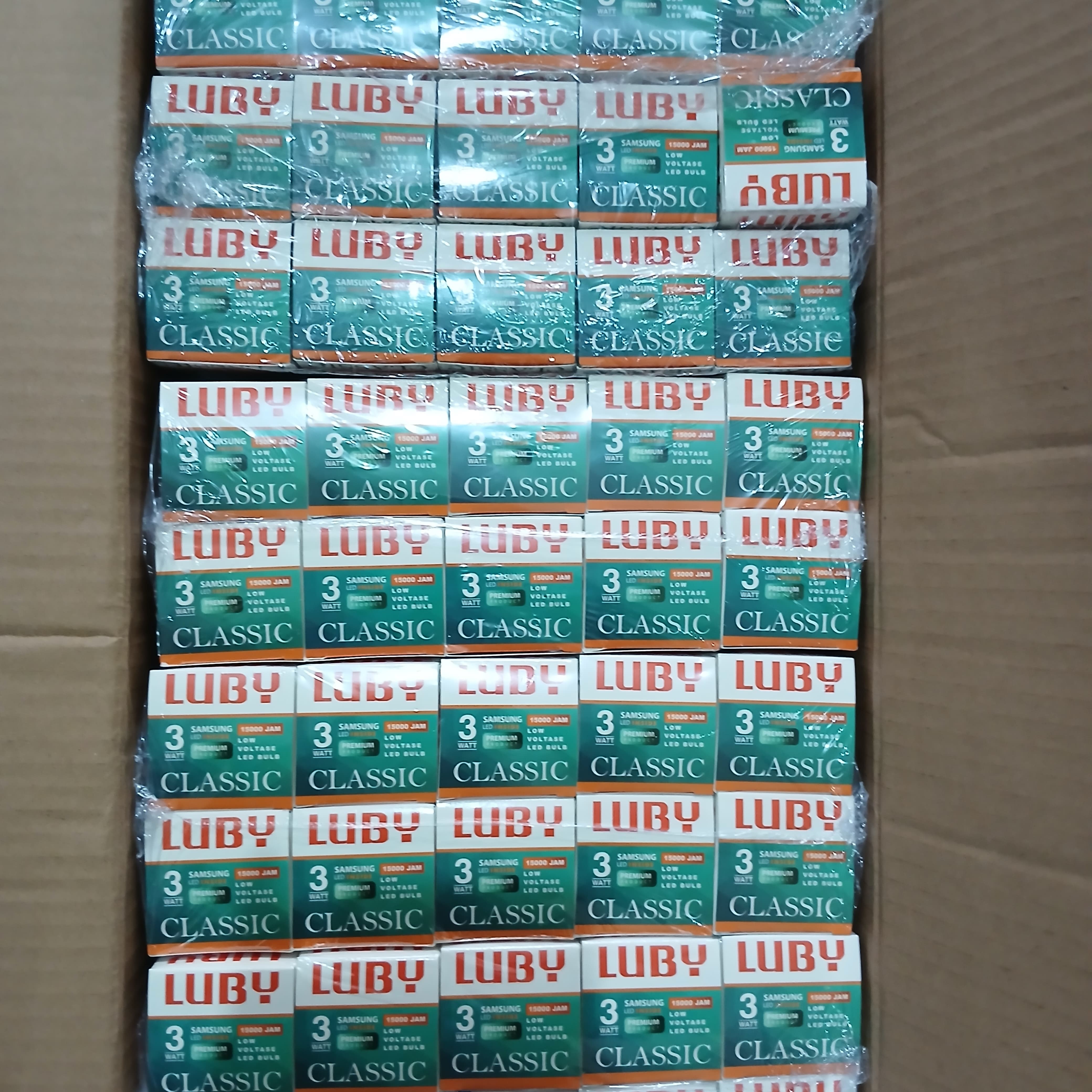 Lampu LED Luby Classic 3 Watt 1 Dus Kardus Karton Koli isi 100 pcs Grosir Kolian Bohlam 3W