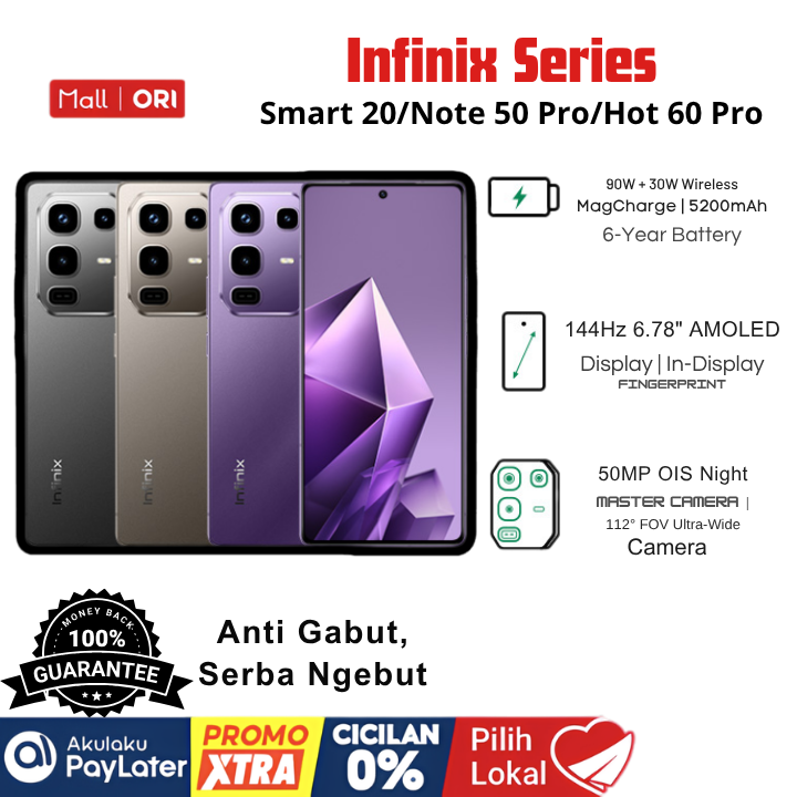 [Mall] Tanpa DP - Infinix Hot 60 Pro Infinix Note 50 Pro Infinix Smart 20 4/64GB 4/128GB 8/256GB Up to 16GB Extended