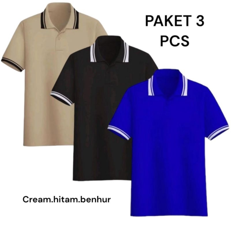 Kaos Polo Pria Paket 3 PCS Premium Stripe Lengan Pendek Katun