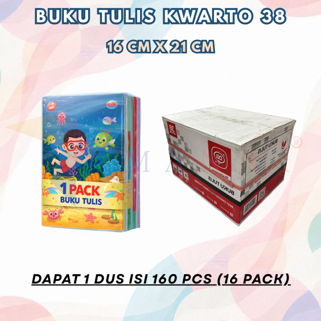 (1 Dus/ 160 pcs) Excelindo Buku Tulis Kwarto 38 Lembar (GAMBAR ACAK) (Kertas Putih Dan Tebal)
