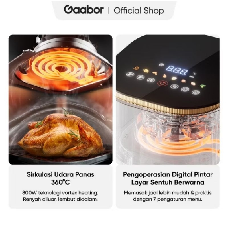 Air Fryer Gaabor AF-45T01A 4.5 L Low watt Digital Touch Kaca Transparan AF45T01A