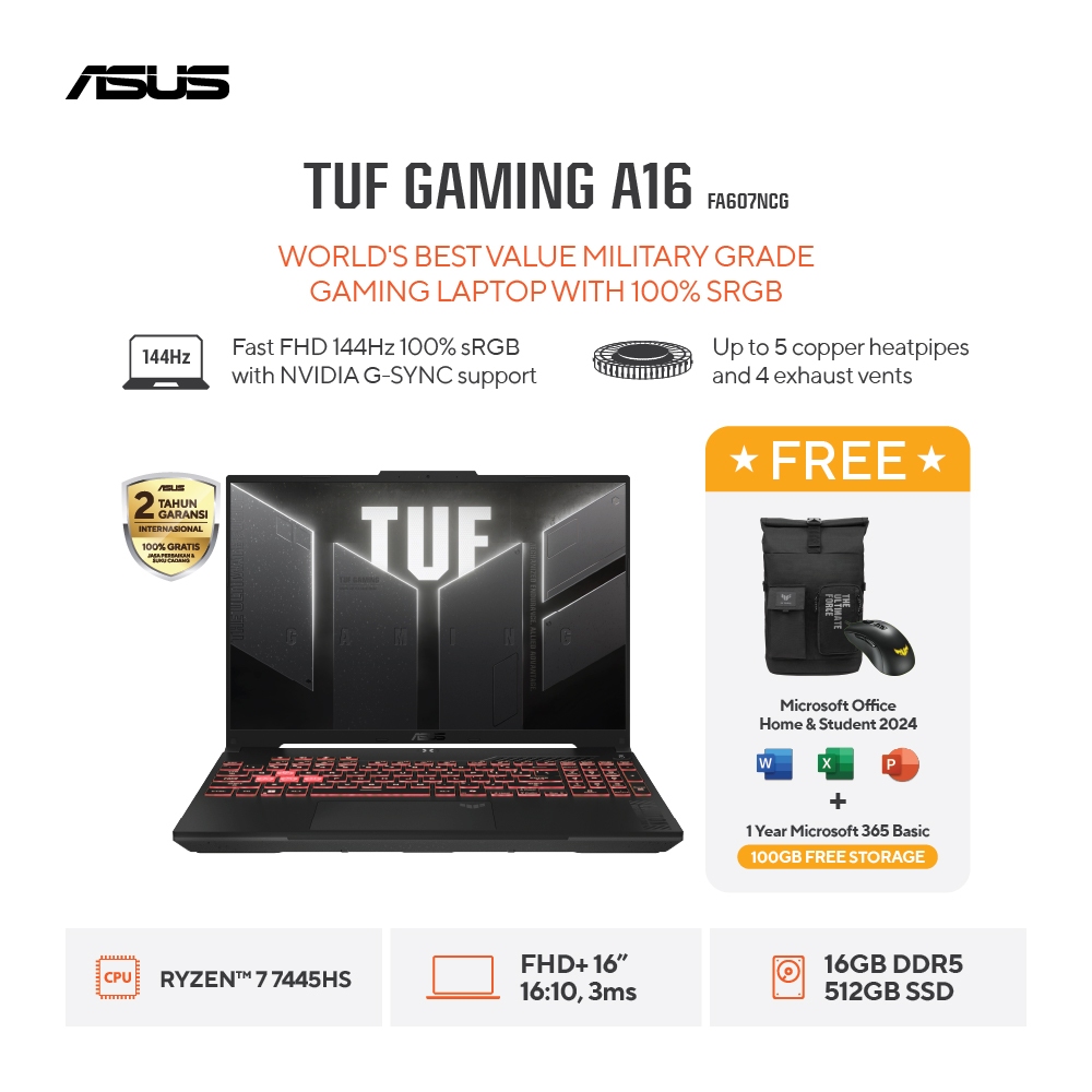 [FREE MOUSE] ASUS TUF Gaming A15 FA506NCG-R735B6T-HM - Graphite Black [AMD Ryzen 7 7445HS / NVIDIA GeForce RTX 3050 / 16GB / 512GB / 15.6inch / WIN11 / OHS24 / M365]