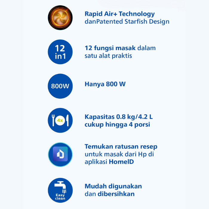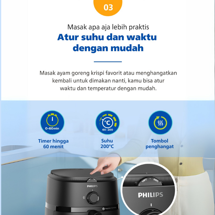 Philips Air Fryer Low Watt 800W 4,2 Liter Penggorengan Tanpa Minyak Anti Lengket AirFrayer NA120/00