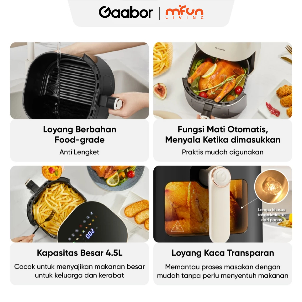 Gaabor Air Fryer Digital 4.5L Touch Screen Defrost Penggorengan Tanpa Minyak Layar Sentuh AF-45T01A