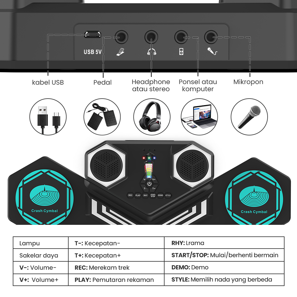 Portable electronic drum desktop drum hand roll electronic drum hadir dengan speaker definisi tinggi dan mendukung konek