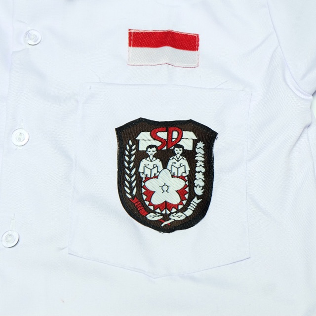 Kemeja Seragam Sekolah SD Putih Lengan Pendek Lengkap dengan Bendera