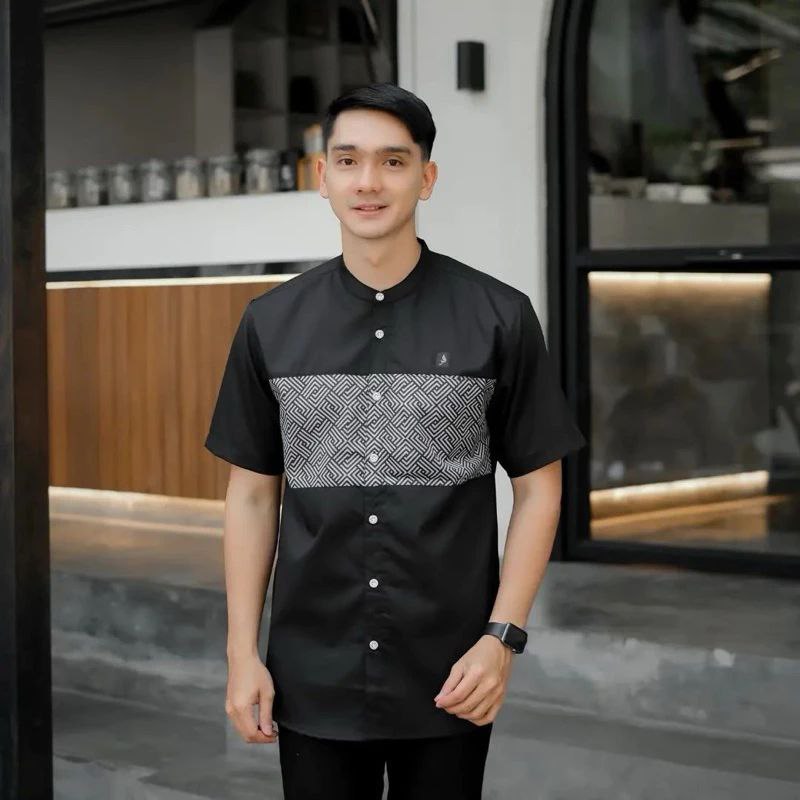 Baju Koko Pria Kurta Lengan Pendek Kualitas Premium Kemko Motif Kautsar