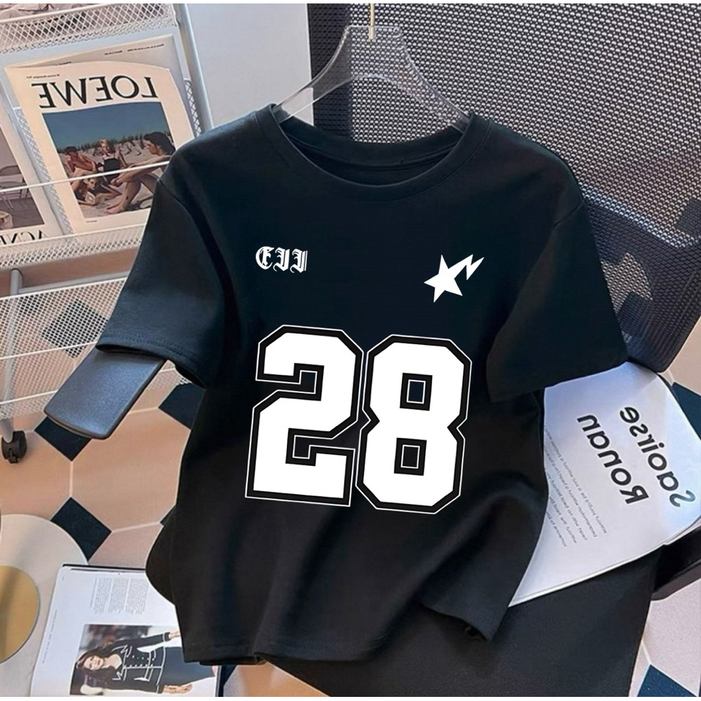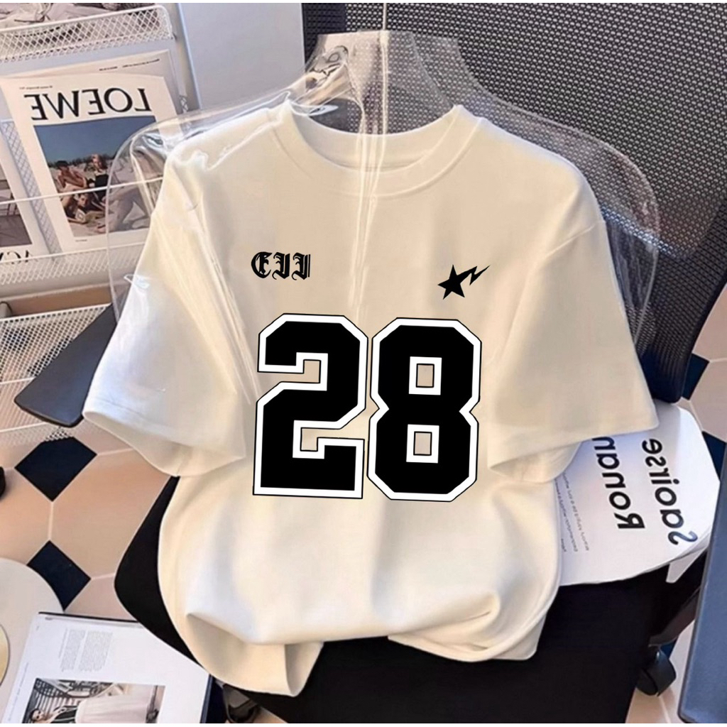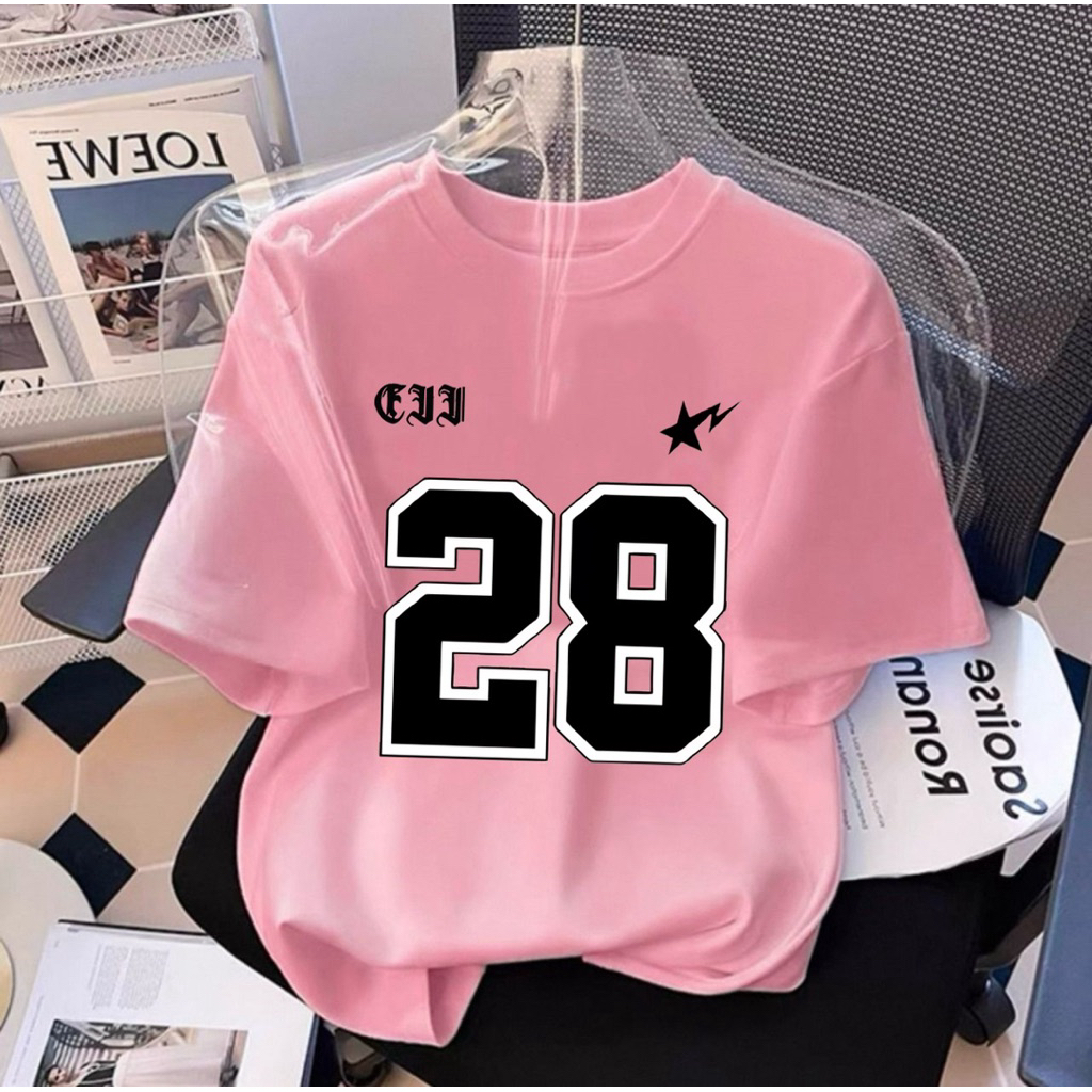 Kaos Oversize Anak Perempuan Motif Angka 28 Bahan Cotton Combed 24s Usia 3–14 Tahun