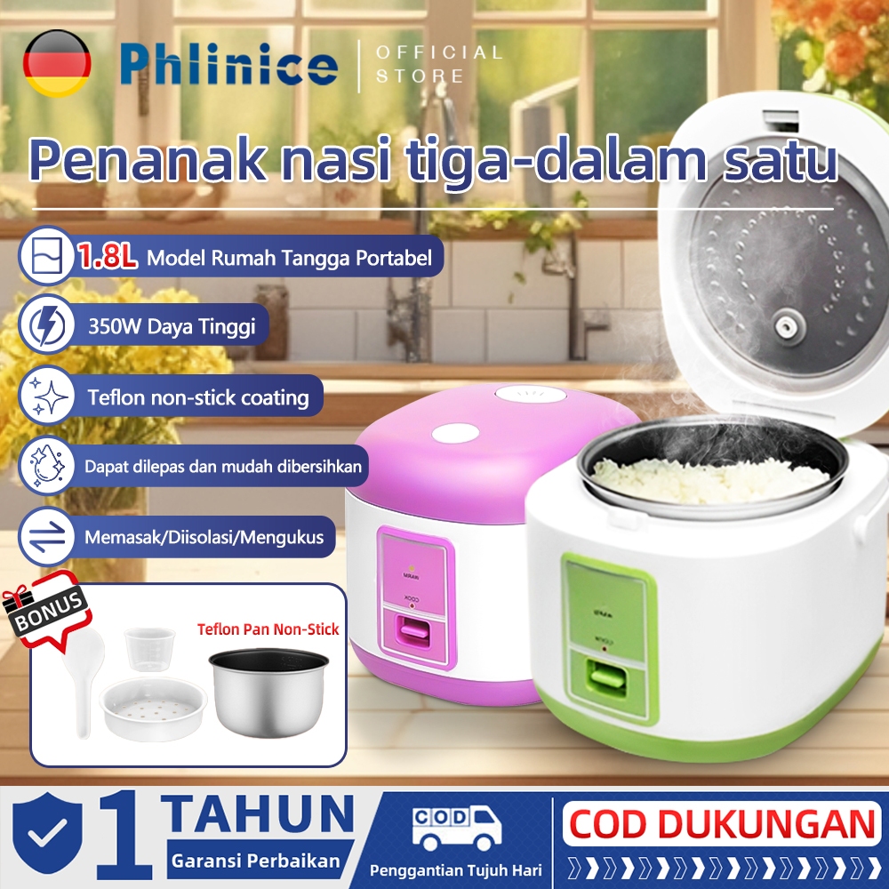 Omicko Rice Cooker Magic Com MC-101 PL(1,2 / 1,8 LITER) Penanak Nasi Rice Cooker 3 in 1 - Omicko(BUNUS Gelas Ukur dan Sendok Nasi)