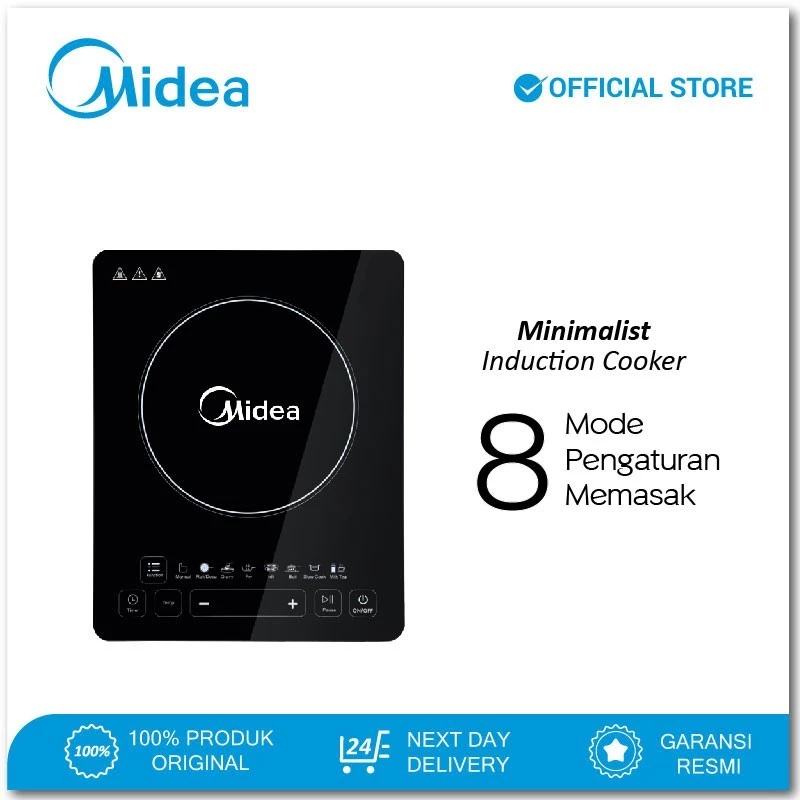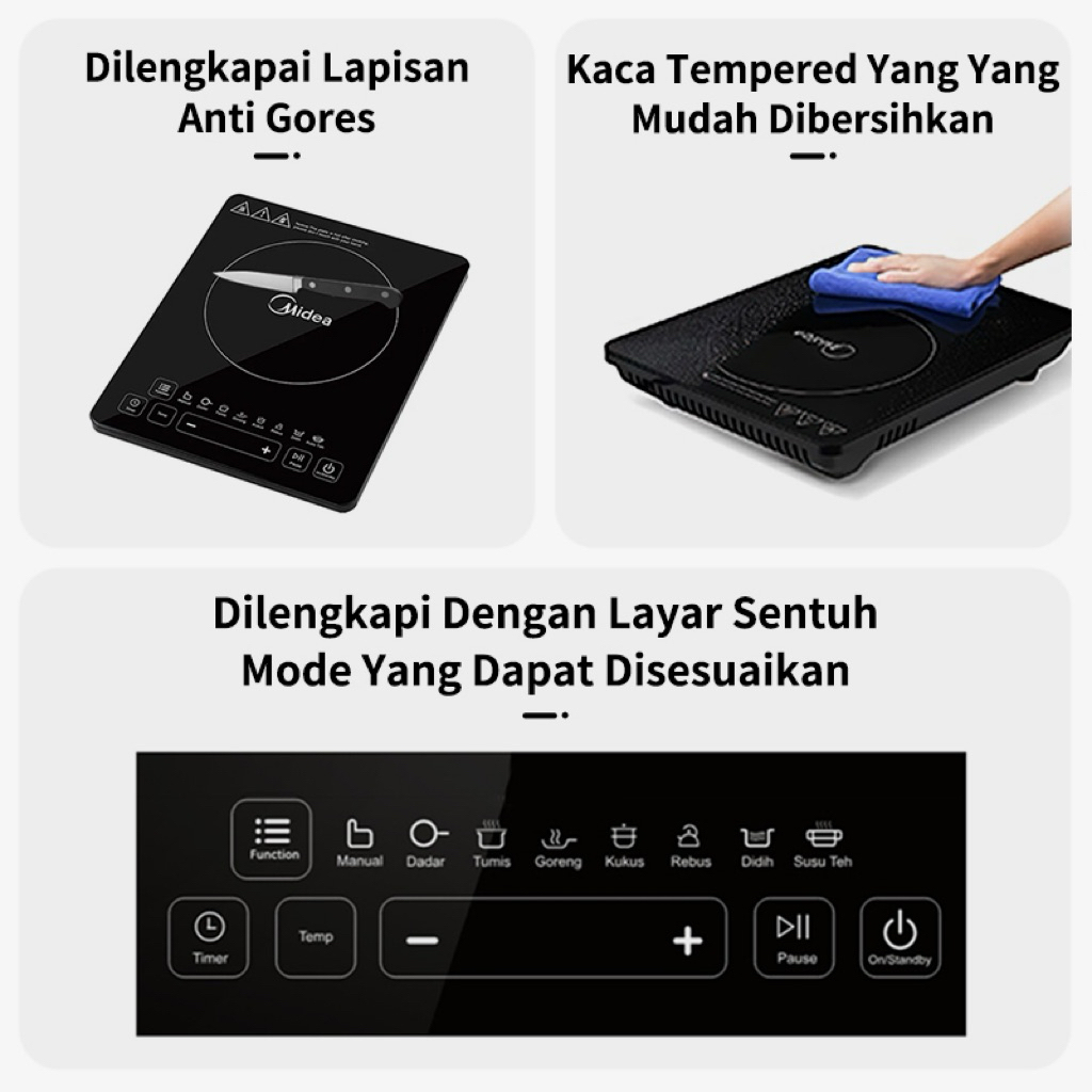 GRATIS PANCI STAAINLESSTEEL Midea Kompor Induksi IC-1610 Hitam | Anti Gores | Design Minimalis Low Watt
