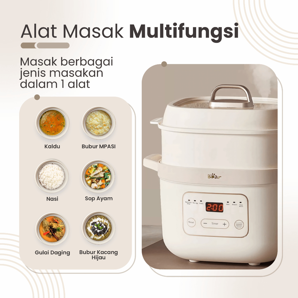 Makassar - Bear Slow Cooker 1.6L + Steamer SC-4H16P | Panci Keramik | Baby & Family Food Maker | MPASI Cooker