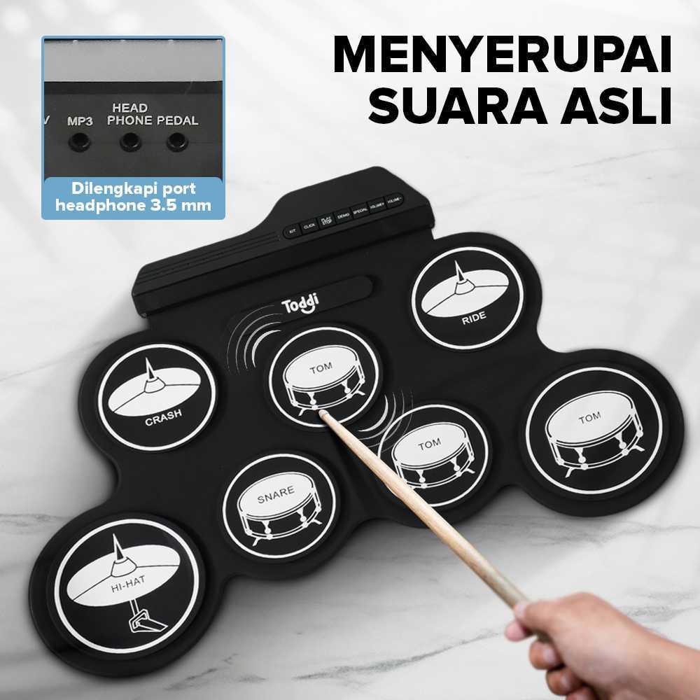 Toddi Electronic Digital Drum Kit 7 Pads Folding USB Power Portable Drum Elektrik Belajar G3002