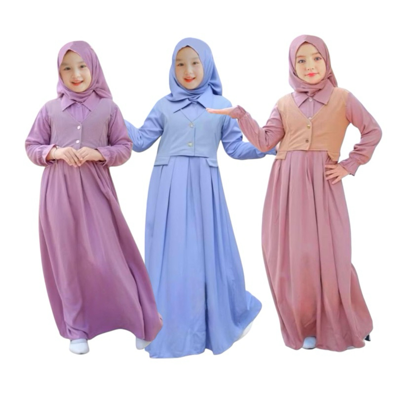 Gamis Anak Perempuan Bahan Rayon Twill Mix Knit Set Gamis Anak Dan Jilbab Terbaru