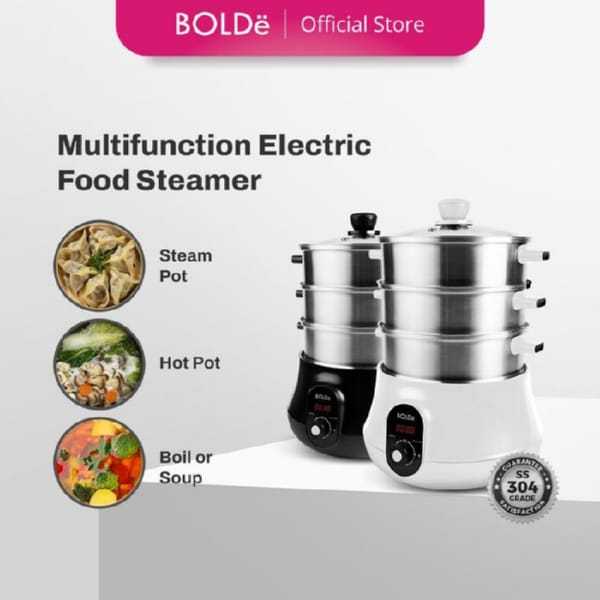 BOLDe ELECTRIC STEAMER 3S Panci Listrik 600W 2 Kukusan 1 Hotpot Tutup Kaca SUS304 Anti Karat Timer