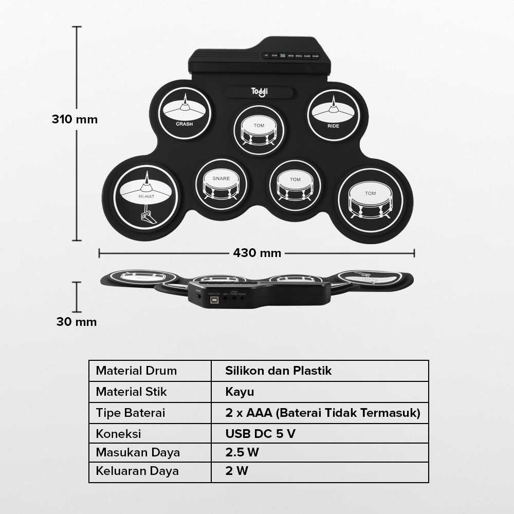 Toddi Electronic Digital Drum Kit 7 Pads Folding USB Power - G3002