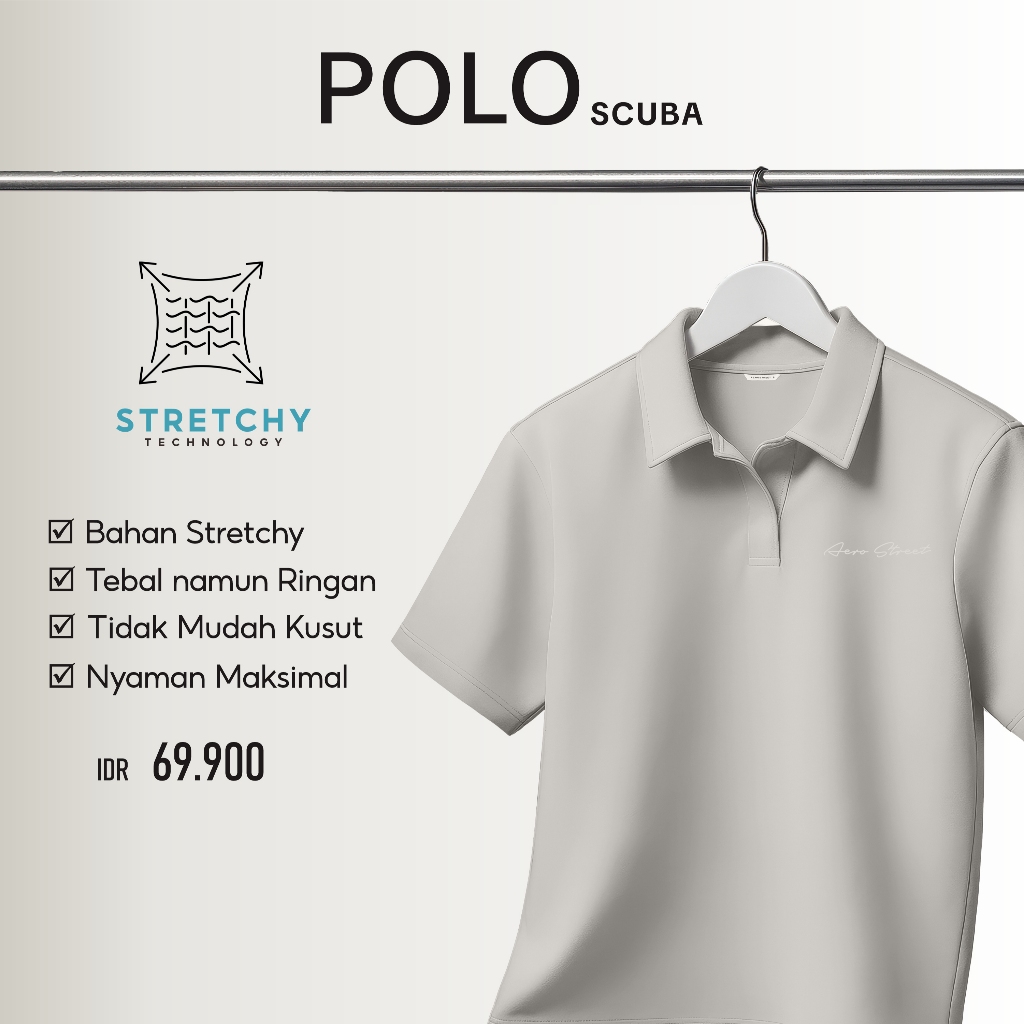 Kaos Kerah Polo Shirt Pria Boxy Aerostreet Zean Ivory Katun