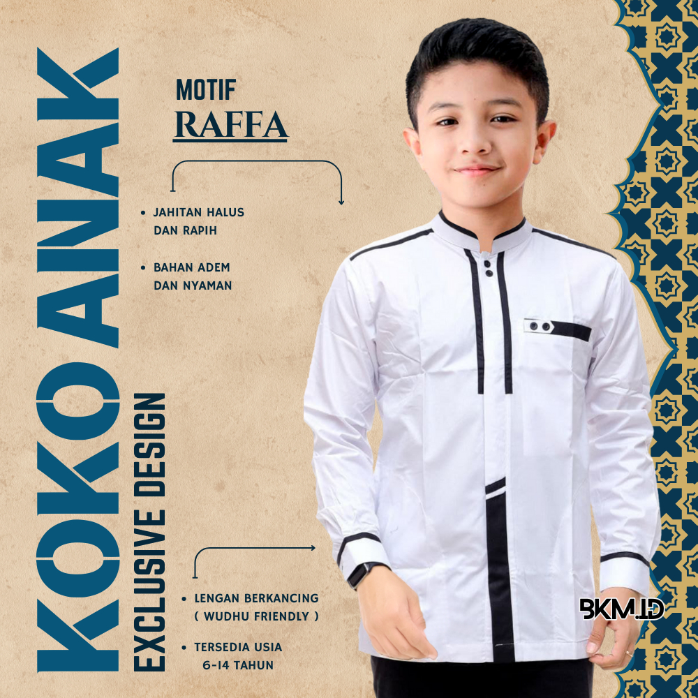 Baju Koko Anak Laki Laki Lengan Panjang Sd Smp 5-14 Tahun Motif Kombinasi Warna Putih Bahan Katun