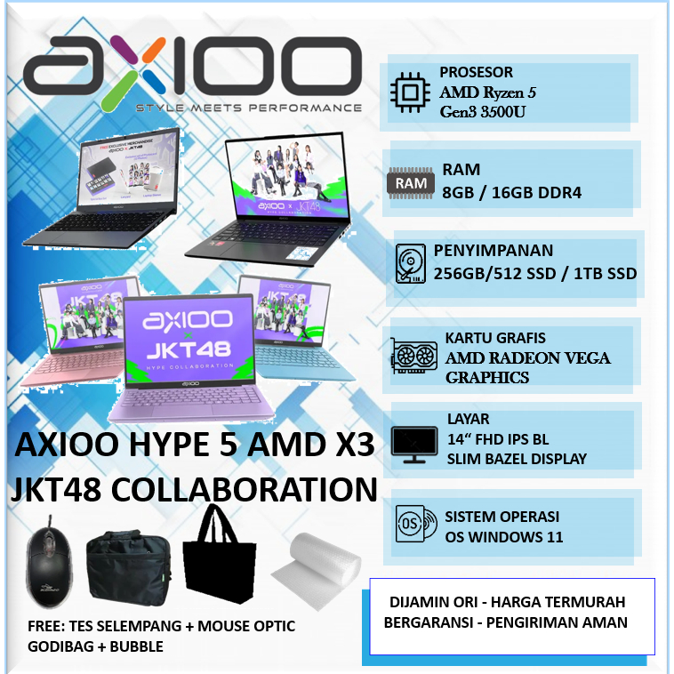 Laptop Gaming Murah AXIOO HYPE 5 Amd Ryzen 5 3500U RAM 16GB 1TB SSD 14"FHD IPS BL Win11Home