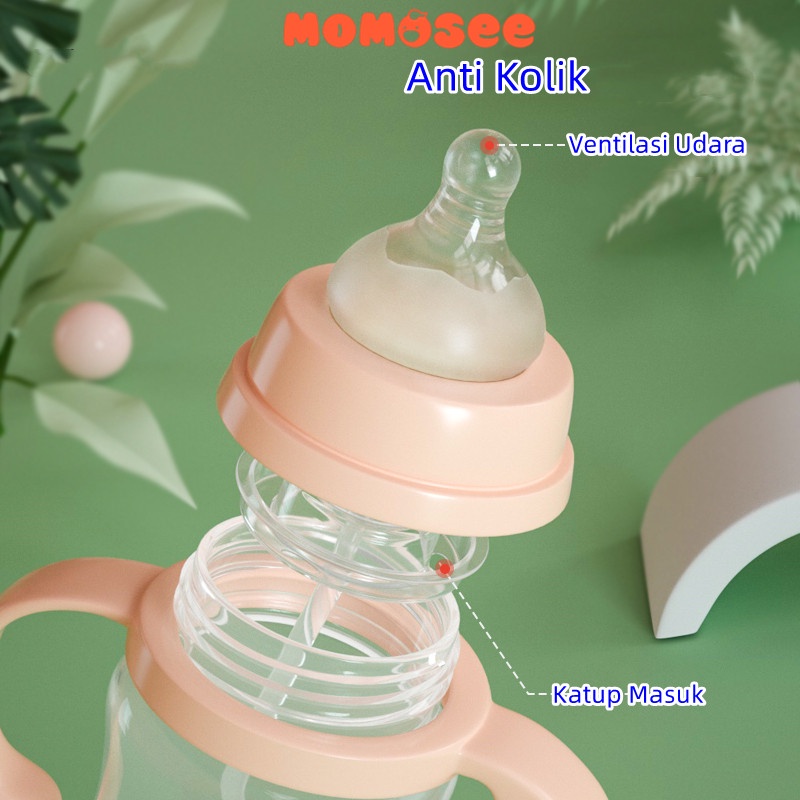 Momosee Botol Susu Bayi Leher Lebar Wide Neck PP Dot Straw Anti Kolik 240ml & 300ml BPA Free BB02