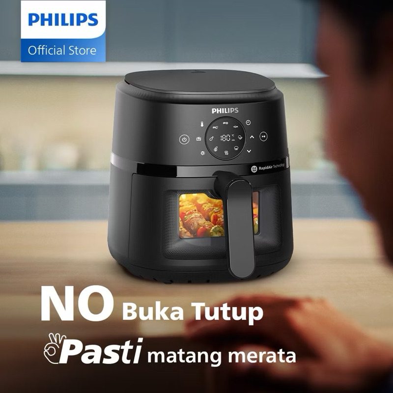 PHILIPS Airfryer Low Watt 800 W Transparan BEST COMPACT SIZE 3.2 L NA210/00 - air fryer multifungsi digital layar sentuh