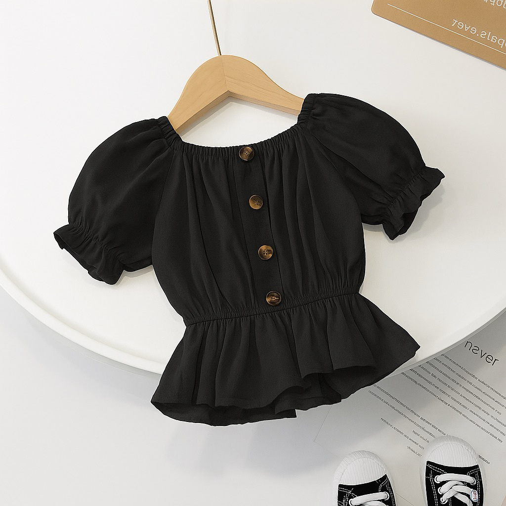 Atasan Anak Perempuan Model Sabrina Kerut Lengan Balon Usia 1–8 Tahun