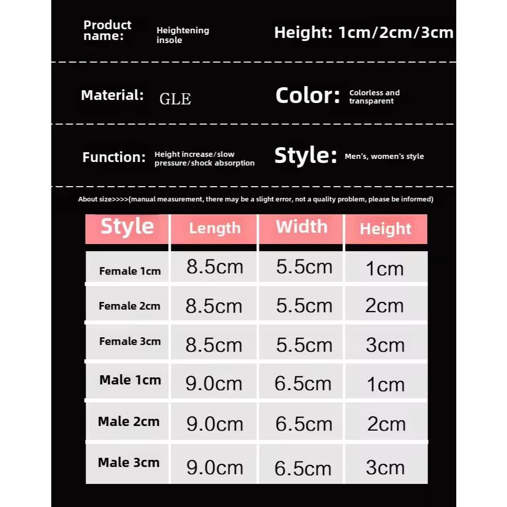 GEL PENINGGI BADAN INVISIBLE PENINGGI BADAN T BAHAN SILIKON EMPUK INSOLE SEPATU ALAS SEPATU SOL SEPATU AKSESORIS SEPATU BLK