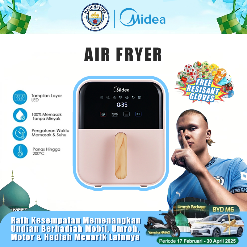 Hadiah Gratis Midea 650W Air Fryer Daya Rendah 4L Pegangan Kayu Desain Layar Sentuh MAD40007ADI