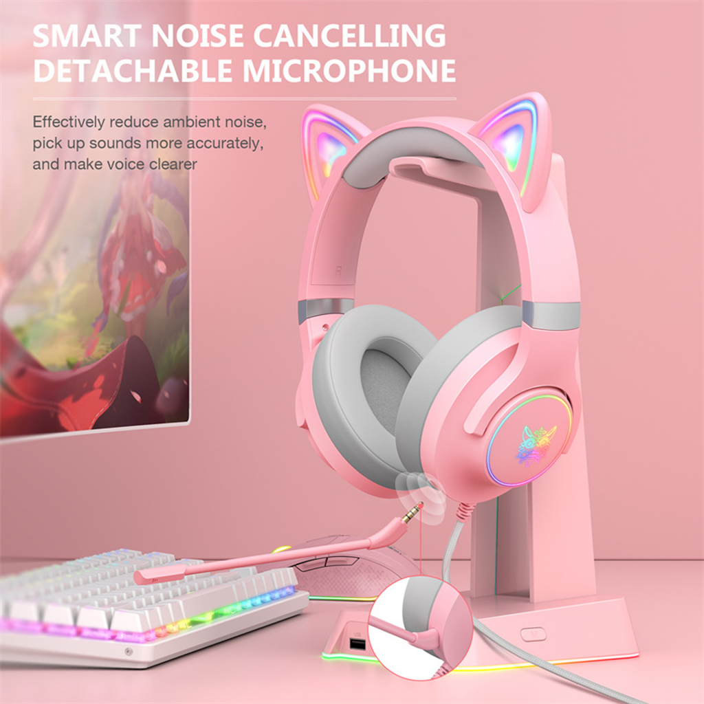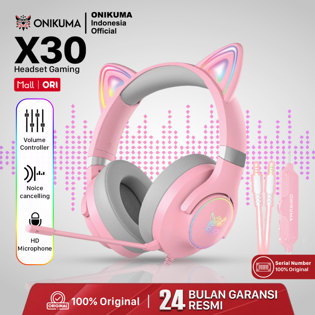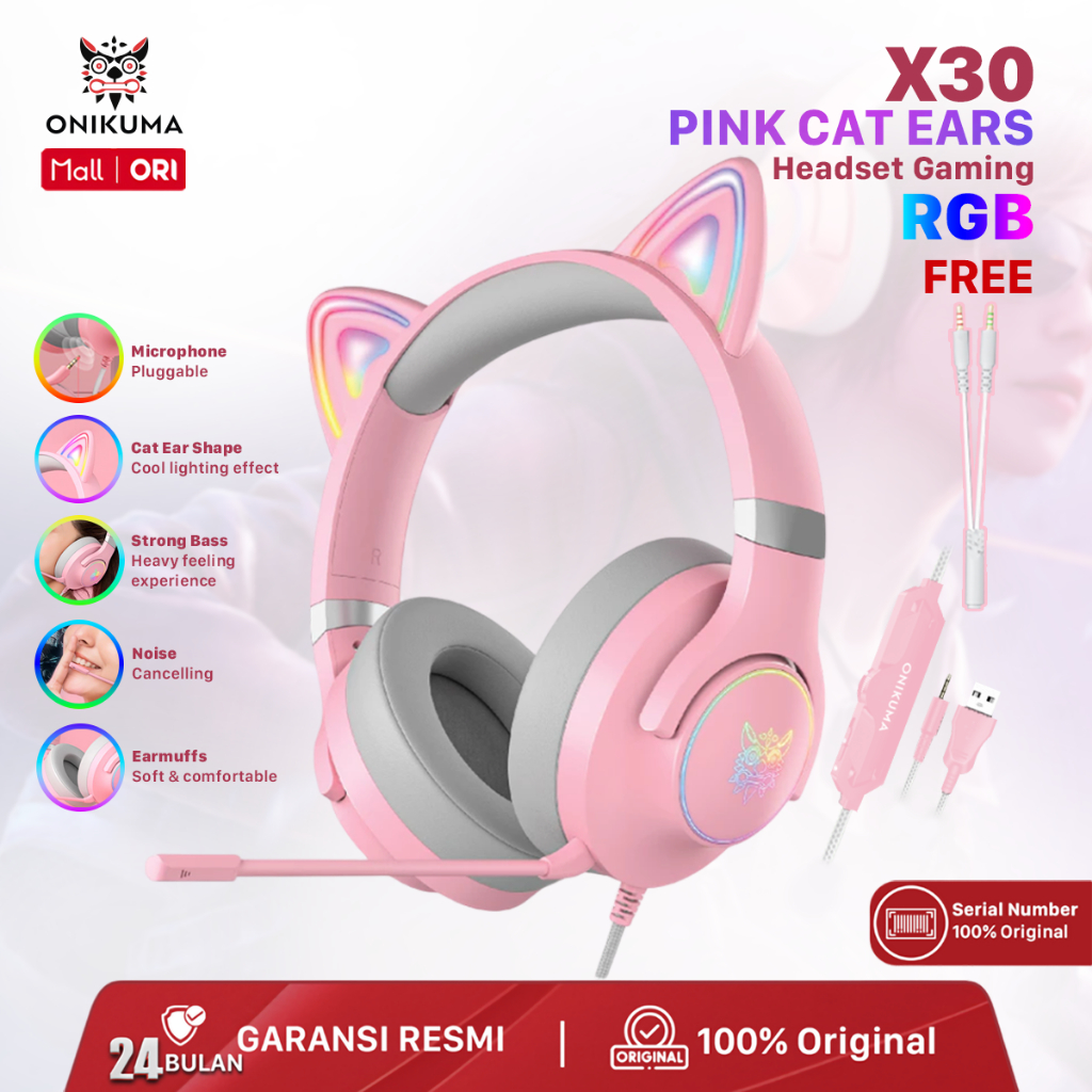 ONIKUMA X30 Headphone Gaming Wanita NEW FREE PRODUK MINIMAL PEMBELIAN 300 RIBU} - Pink RGB Headset Gaming Model Cat Ear