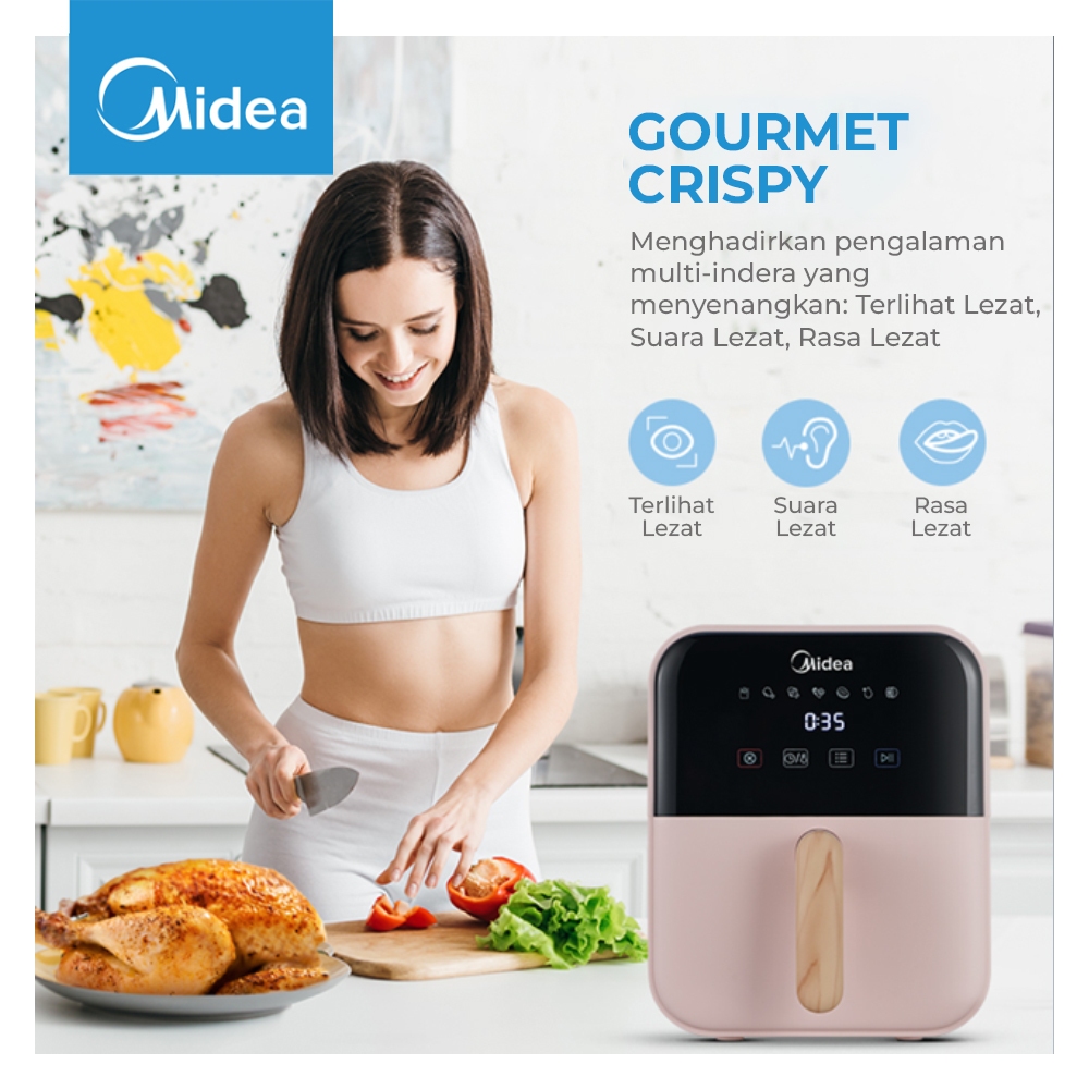 Midea Air Fryer 4L 650W Low Watt MAD40007ADI Penggorengan Tanpa Minyak Digital Touch Pink